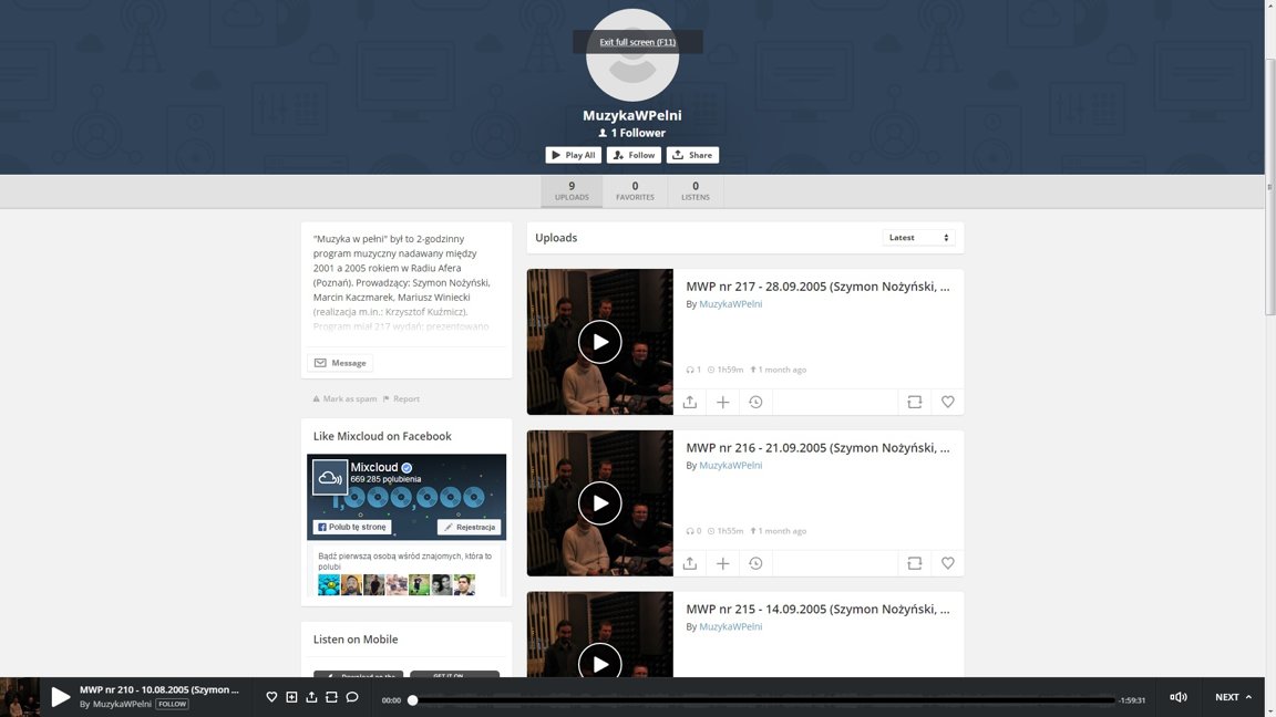 Niektóre audycje cyklu "Muzyka w pełni" na mixcloud.