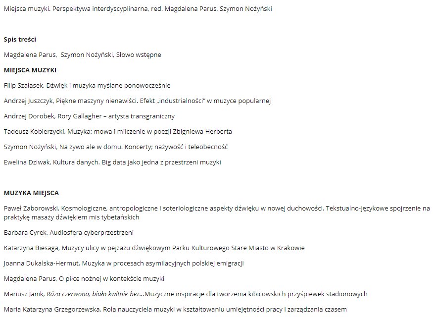 "Miejsca muzyki" już w oficjalnych zapowiedziach Wydawnictwa Naukowego Katedra. Książka pod moją i dr Magdaleny Parus redakcją niedługo się ukaże.