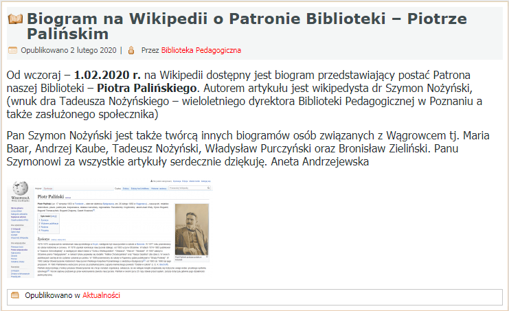 Biblioteka Pedagogiczna w Wągrowcu zamieściła taki oto miły wpis...