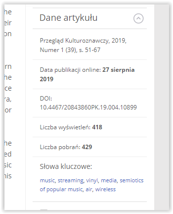 Z przyjemnością odnotowałem fakt, że nasz artykuł w Przeglądzie Kulturoznawczym ma sporo pobrań