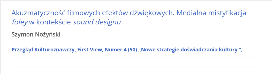 Przegląd Kulturoznawczy anonsuje kolejny numer. Będzie tam także mój artykuł o praktykach foley/sound design w filmie