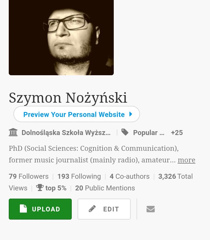 Wygląda to optymistycznie, ale niewiele znaczy. Academia potrafi podnieść na duchu, niestety widać tam aktywność botów - fejkowych kont, które nabijają liczby wejść na profil. Niektóre wyliczenia są zbyt optymistyczne i raczej nie przekładają się na sensowne efekty - ale to i tak miłe, że komuś chce się zajrzeć na konto, poczytać, albo zwyczajnie zignorować.