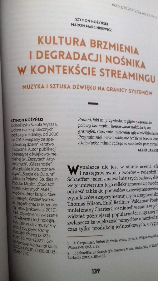 Nowa Kultura współczesna jest już dostępna (3/2022). Cały numer poświęcony jest fonografii. To naprawdę ciekawy tom! Udało nam się (mnie i Marcinowi) w nim partycypować.