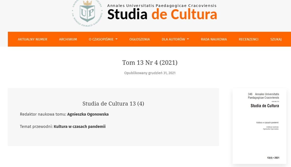Właśnie ukazał się nowy numer Studia de Cultura, między innymi z moim (i Marka Okólskiego) tekstem
